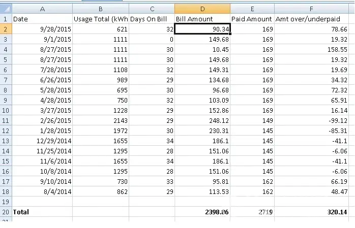If I had (for arguments sake) the exact same usage the next 17 months as last, and my budget billing was identical, by the end of the next 17 bills I would have then paid them $620.28