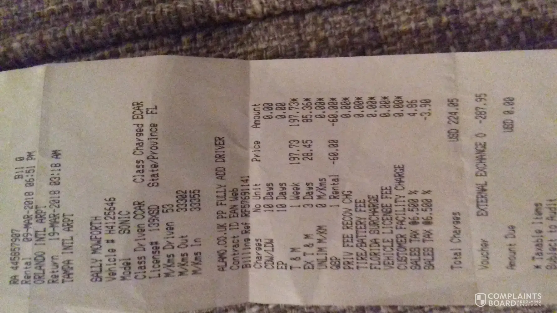 Above is copy of my receipt following car hire.