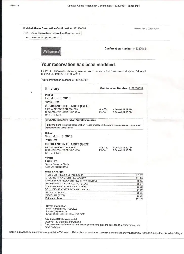 From: Alamo Rent A Car