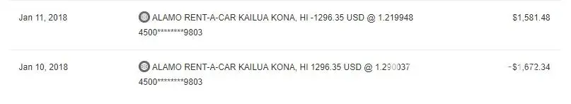 It was the worst experience. I paid cash when I returned my car. I didn't expect Alamo to charge my credit card as well. It was double billing. After two days I saw the charge, I became panic. I called and was promised that I would get full refund. I told Alamo that I didn't use an American credit card, so there would be a currency difference. I was told they would ensure I wouldn't be affected by the currency difference. However, the refund showed a currency difference and I lost close to $100 CAD because it! Since then I called again and again. Every time I had to repeat the incident, which cost me a lot of time and energy. Recently I talked to someone at Kona, Hawaii, and got comments like "why is it our problem". Well, to this rude agent who tried to lie and argue her way out of this, if you didn't charge my credit card, as you should not have done when I paid with cash in full, nothing of this would happen. To this agent, yes, that is your problem because you double billed me at the first place. If you did something like that, the least you can do is to ensure I get my money back without being affected by the fact that you illegally double billed me! This attitude is unacceptable because Alamo should know by know that a big portion of the people rent a car in Hawaii are not from the States and there will be a currency difference if you just randomly charge people's credit cards. And yes, people from other countries know that double billing in U.S. is illegal.