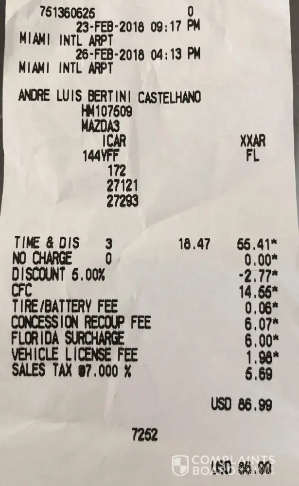 I picked up the car on February 23rd and returned it on February 26th at Miami International Airport.