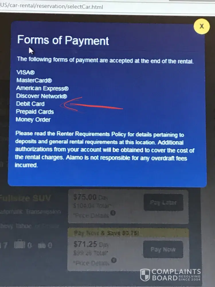 So, on Friday night, I left my best friend's birthday party really early to wake up 6am on Saturday. I took the bus to Newark ($17) and got at Alamo's desk at 8am. However, when I gave my license and my card, they told me they could not accept debit cards. I was really chocked because the website says they accept debit card. I made sure of it before renting the car because I knew this was a possibility. I asked if my husband could use his credit card, but, since he doesn't have a driver's license, they told me that was not possible either.
