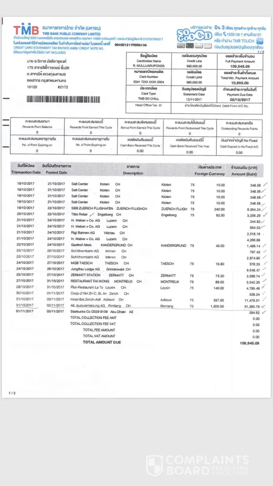 This is fraud damage claim that I happened. Now I arrived Thailand and could not object them and have to pay this amount.