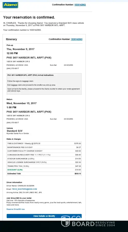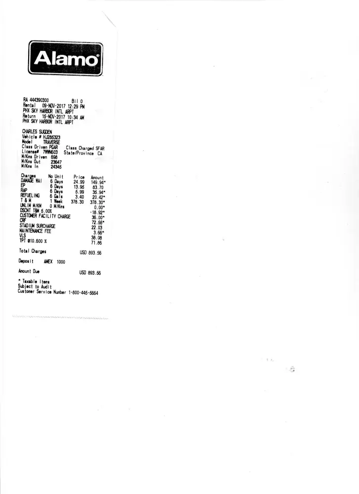 Recently I rented a vehicle from Alamo at the Phoenix Airport, confirmation #[protected]. At pickup I decided to purchase the damage waver and I had returned without a fillup, so there were valid extra charged but the price I paid was far, far above what was expected by the web site confirmation. See attachments.