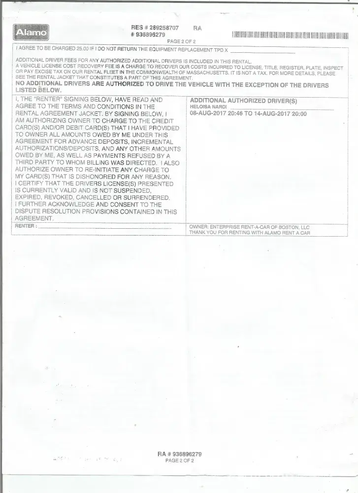 As I said, I will not admit to being charged for a toll account that I paid at the counter, suggested by the seller, and that would cover all the tolls that I would have until I returned of the car on August 14, 2017.