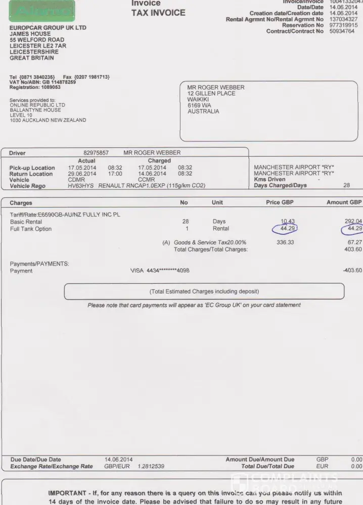Read full complaint and 13 commentsextra charge from ec vehicle rental