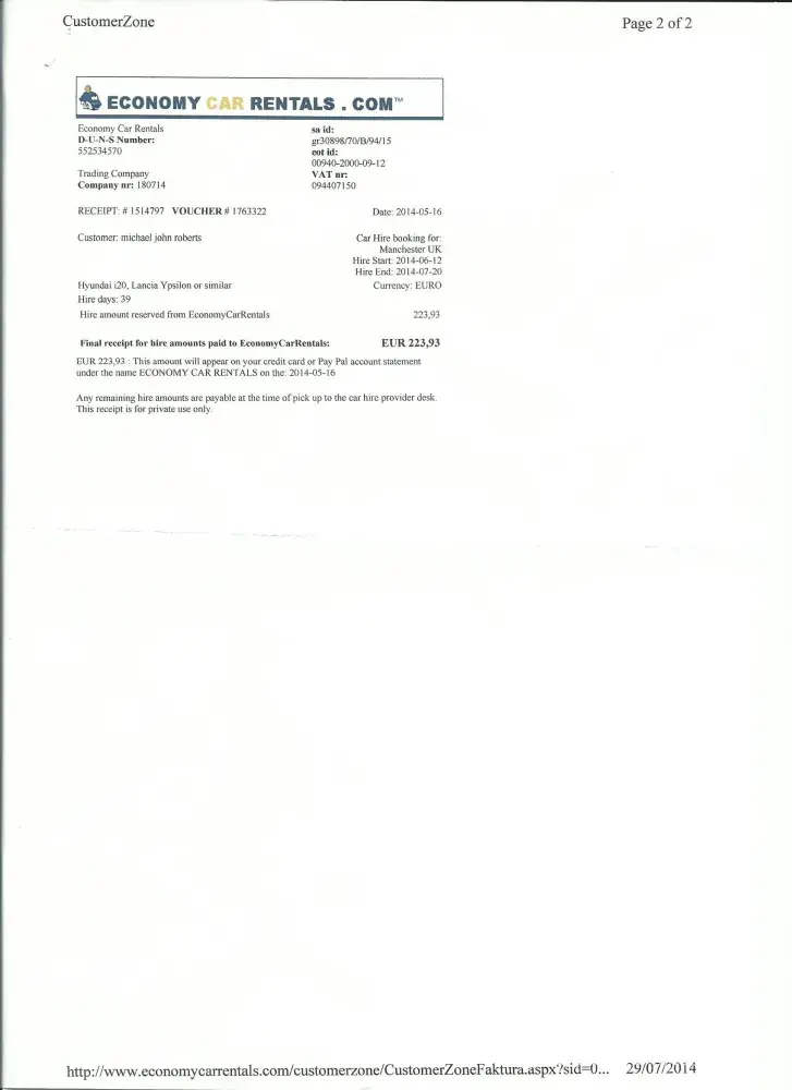 I Live in New Zealand and booked a car rental on line with Economy Car Rentals for a visit to UK.