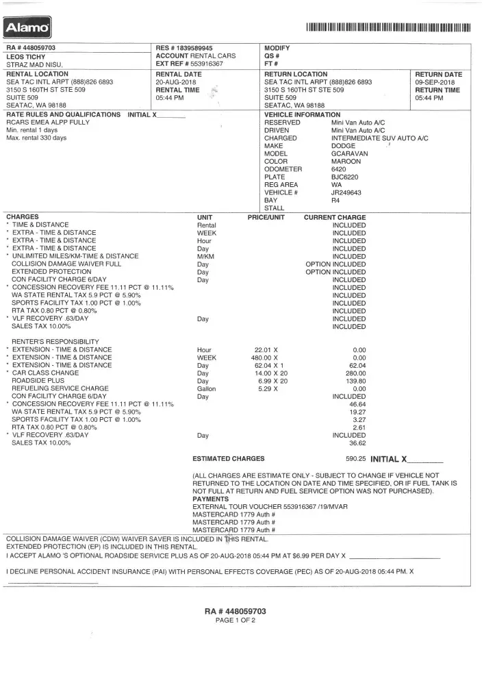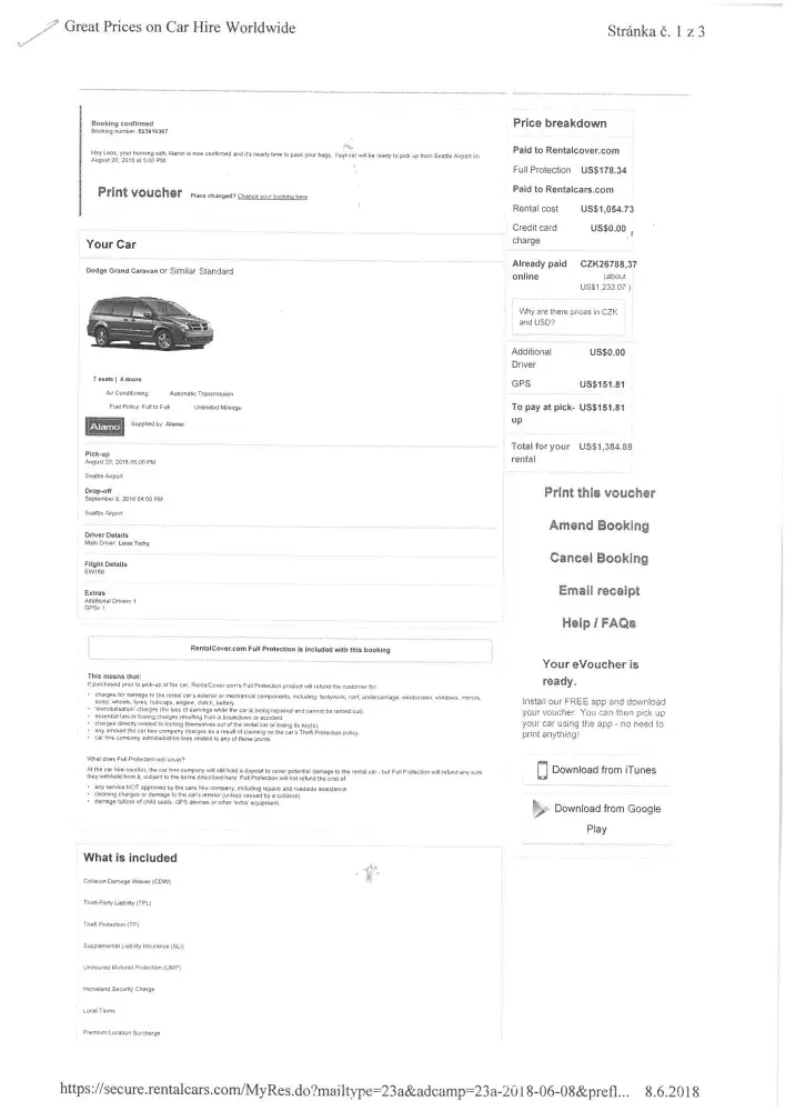 I attached your receipts and Booking Confirmation of Rentalcars where you can see that we paid all rent fees in advance.