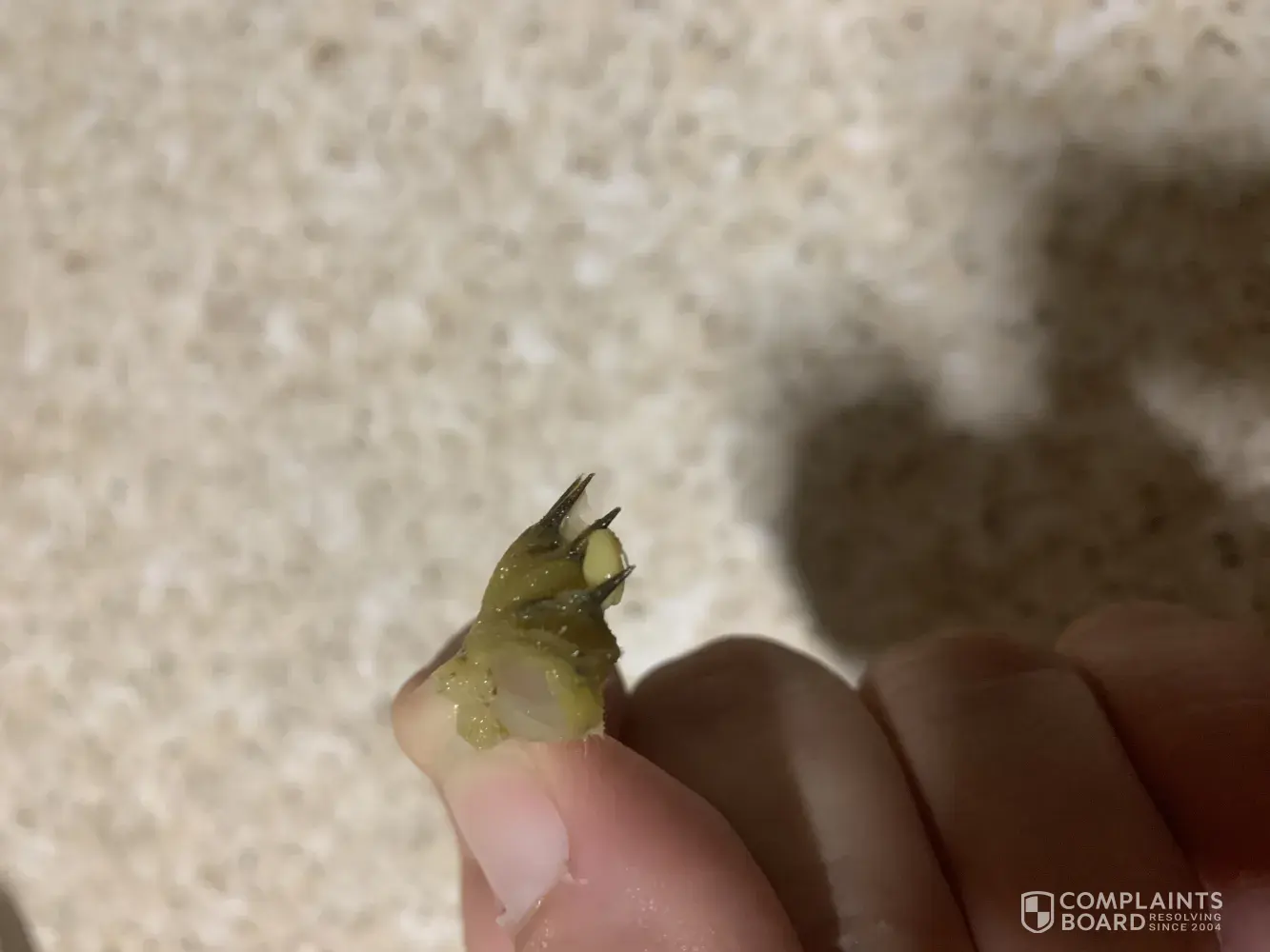 On 10/10/2019 I was sitting down to dinner with my family when my son who is only 7 years old told me it felt like something was poking him in the mouth. I had him spit out his food and this is what was in his mouth. This came from the can of green beans that I purchased at Albertsons. I understand that things happen but this is so completely unexceptionable. This could have literally killed my child. And if it has happened to me who else has it happened to. Shame on the quality control for allowing something so dangerous to be in their foods. I think this is something that needs to be shared with the news.