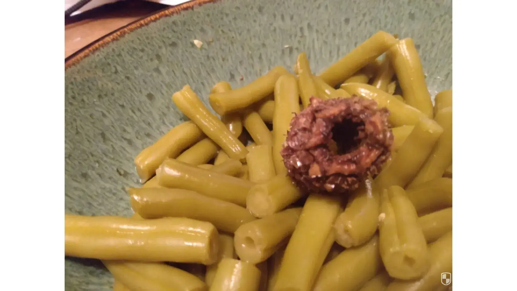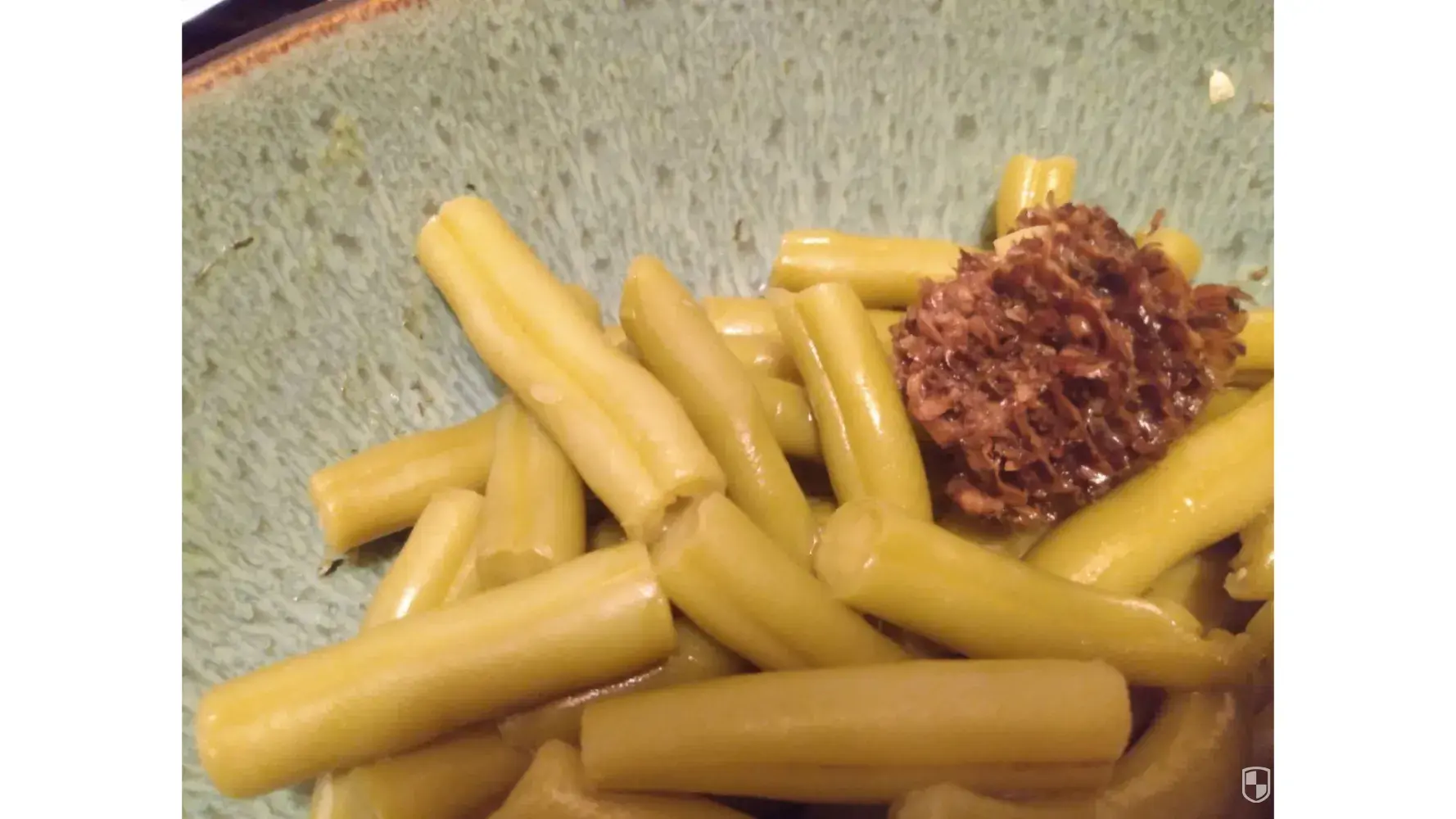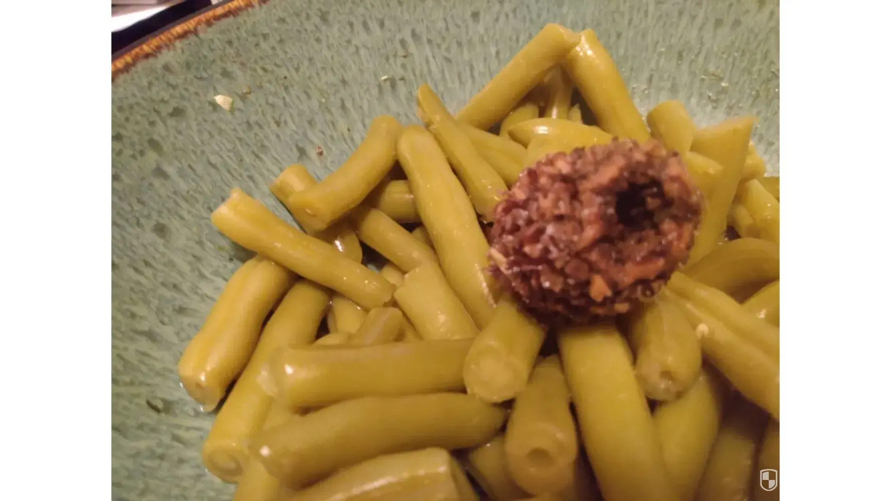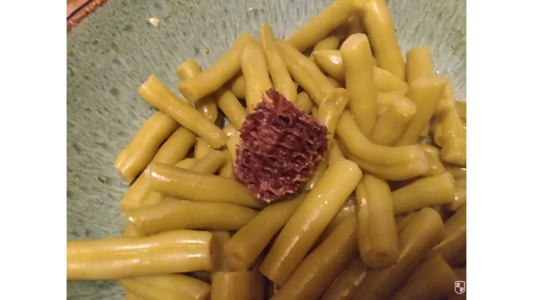 I opened a can of green beans tonight for dinner, and there was a large chunk of something else in the can, as well. It's dark brown and very nasty looking. It's possibly an old chunk of corn cob. But it's very off-putting and absolutely shouldn't be in my can of green beans.