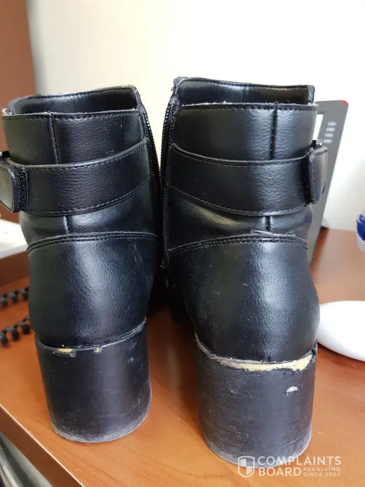 Ordered a pair of boots online and they arrived in store on December 24, 2017. I am unable to recollect whether I picked them up before or after Christmas. However, within weeks the material on the heel of the boots started wearing away, I didn't think much at first as it was on the rim of the heel and thought this may wear only on that part but not damage any more than that. In the past week I have only noticed that the material is now peeling off really badly. I contacted Aldo and the representative was extremely unhelpful, purposefully too. I also went in store and was told I should have bought spray as it is leather but I looked online and it was advertised as 'synthetic' and as I purchase online then I would have to contact Aldo online. I then emailed in a complaint for both the product and bad service, I was told I was out of my 90 day warranty so nothing could be done, I could also go in-store to see if they would help or I could purchase a new pair.