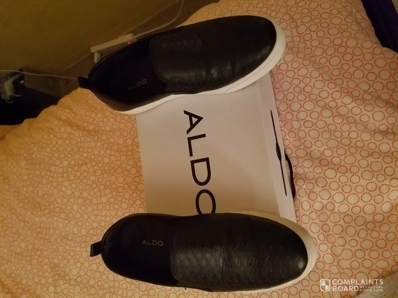 Purchased some beige Aldo shoes and I loved them and they were NOT cheap. They got a little wet in the rain and the RED lining inside the shoes bled all over the outside of the shoes and ruined them. I sent letter explaining situation and pictures to Aldo and Aldo says "not a manufacture defect" & there is nothing they will do about it. I will NEVER buy another shoe from this company again.