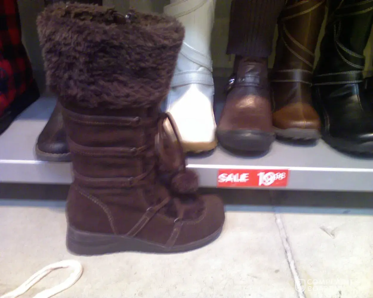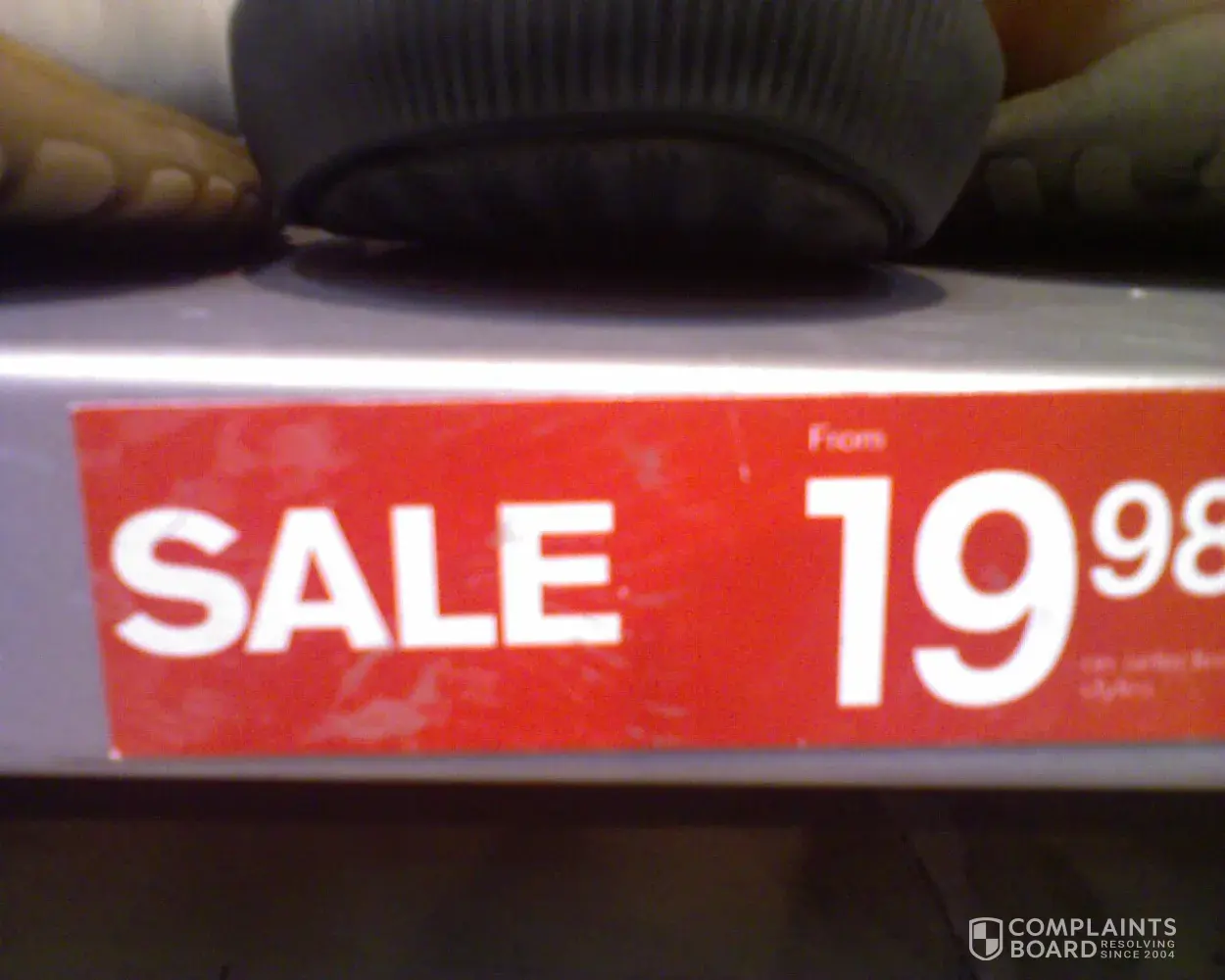 Their were boots on a clearance rack with shoes and boot that said $19.99 everything looked to be on sale when you when to purchase the price was not on sale it was full price... (in very small print not visible unless we got on the floor and looked very closely at the sign it said from) as you will see the photo shows.
