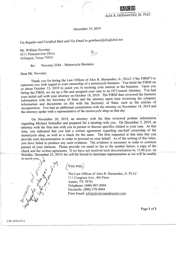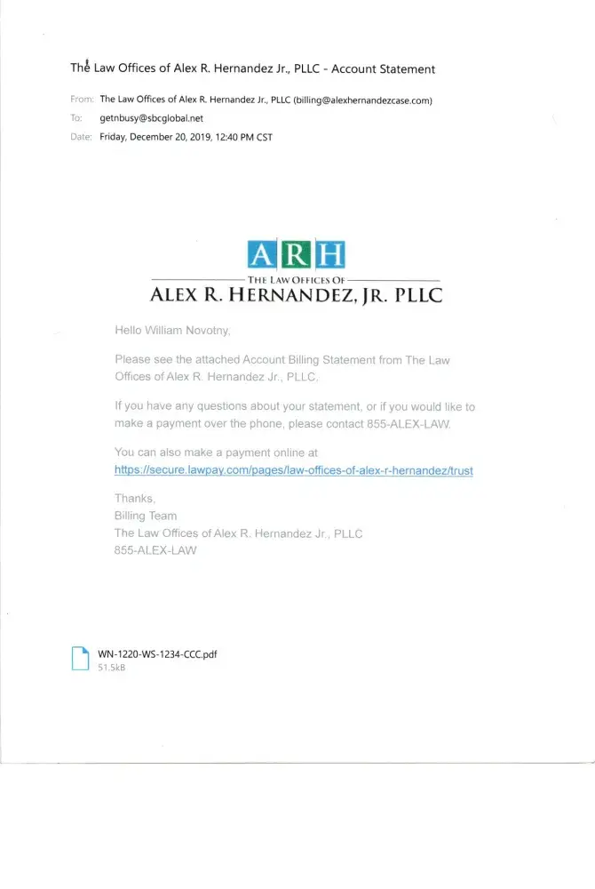 Questionable Law Firm Alex R Hernandez JR: How you can avoid falling victim to a growing problem with this law firm SCAMMING People out of money when thy have no intention on working on your behalf they just want your money.