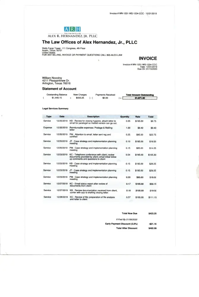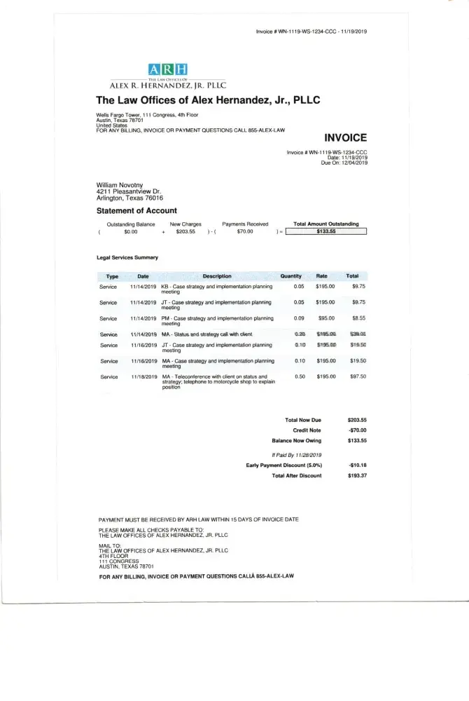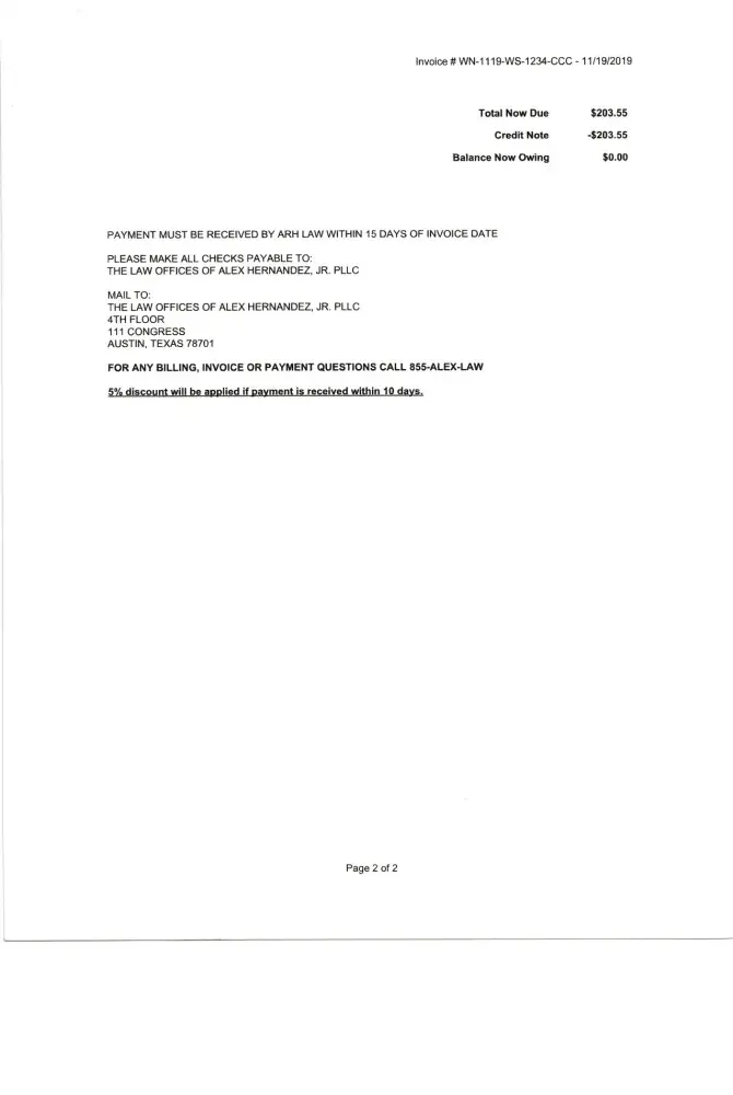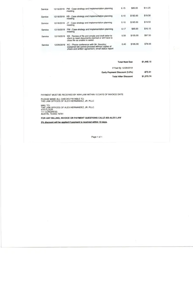 I was contacted by a representative from The Law Offices of Alex R. Hernandez, Jr., PLLC. I was informed that 100% of my payments will be refunded on my case.