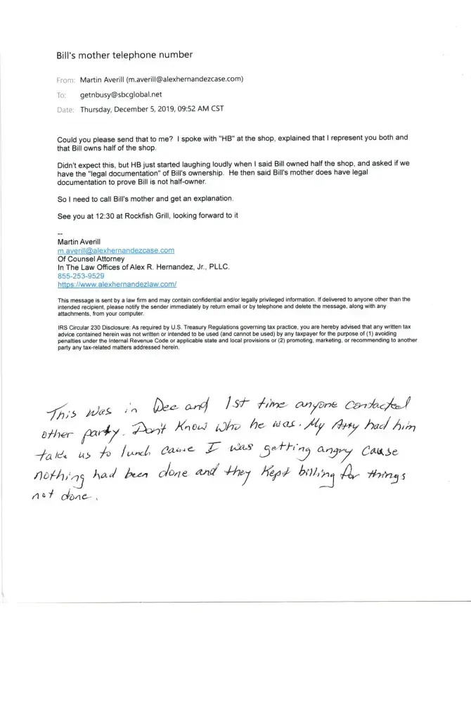 I hired Alex Hernandez early 2019. Paid a retainer fee of 1995.00 for property litigation. Now over $13,000, about 14 different Attorneys and 3 years later. My case haven’t even made it to the courts. Made several attempts with the office only to receive promises of a new Attorney or now return calls.