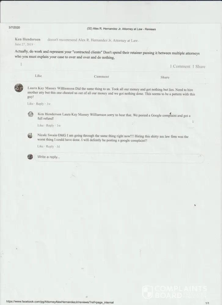 Read full complaint and 11 commentsAlex R. Hernandez Jr. complaints: history and resolution overview