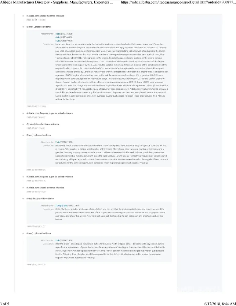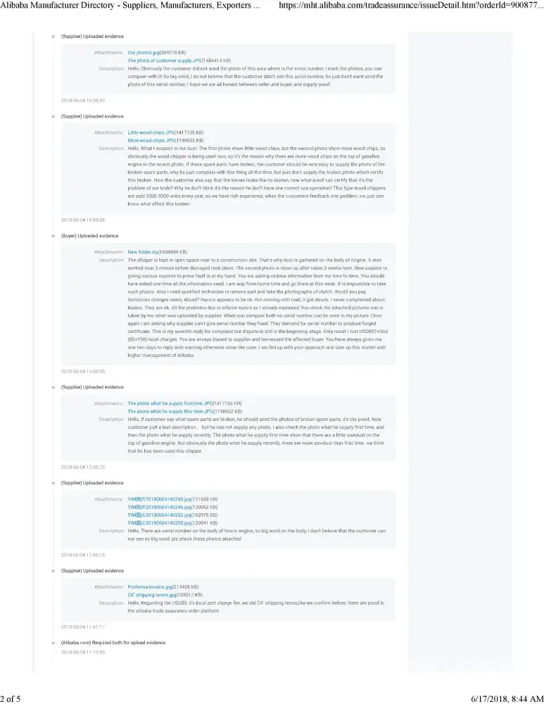 I opened another Alibaba Trade dispute in June 2017. This went back and forth, supplier would lie and I would be asked to continue the order. Each time Alibaba dispute would require me to respond and upload proof even when I told them I was traveling and to please give me longer than 24 hours to respond. Including on my 10 year wedding anniversary trip.