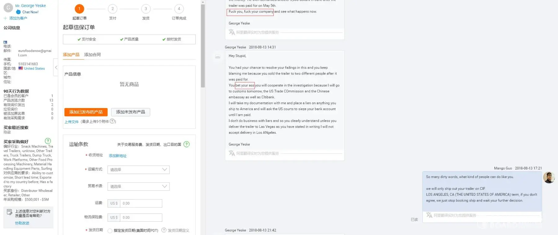 I finally agreed to pay for another "Alibaba Trade Assurance approved Inspector" and waited until October 8th only to learn they would not require the seller to insurance my final payment. I told them they NO. The supplier had already stolen my $6000 USD and they wanted me to trust that this company would complete my order if I would only just pay them another $10, 000. I told them "NO" without the "trade assurance" supervision. Despite, the fact that Trade Assurance had been absolutely no help or assistance in keeping this fraudulent supplier honest or held to the terms the supplier stated they would follow.