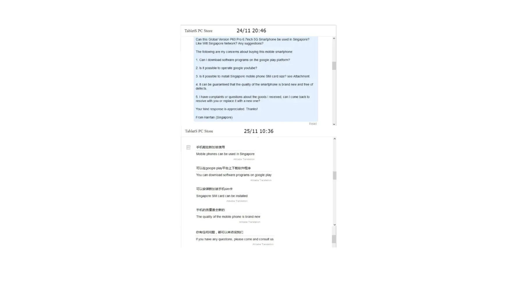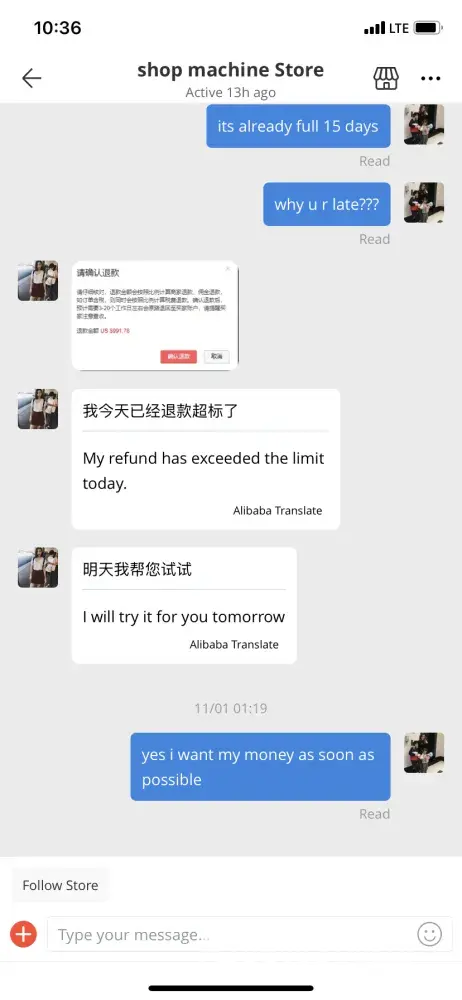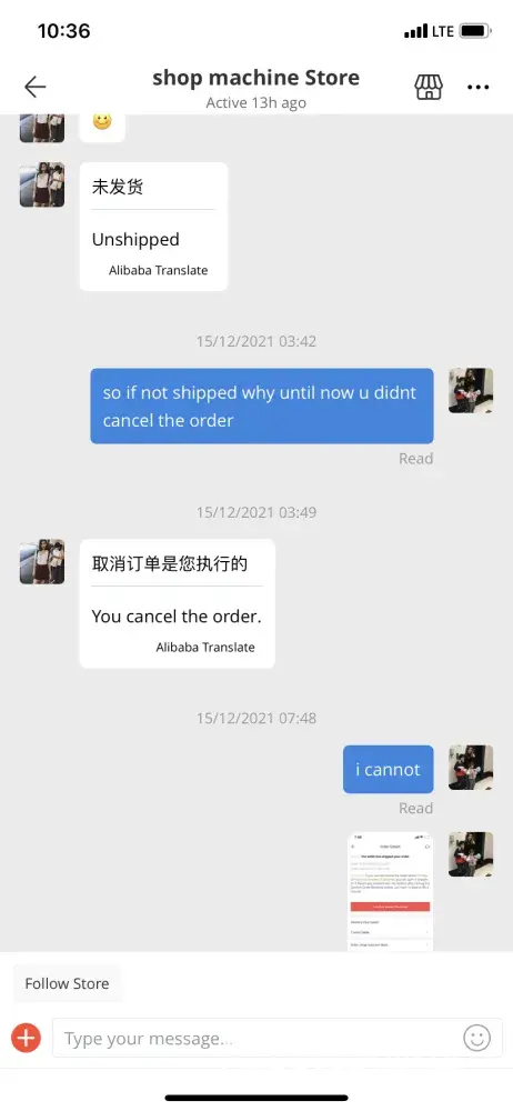 When I checked in my account in Aliexpress, I saw strange conversation between the Seller (store) and client (hacker).