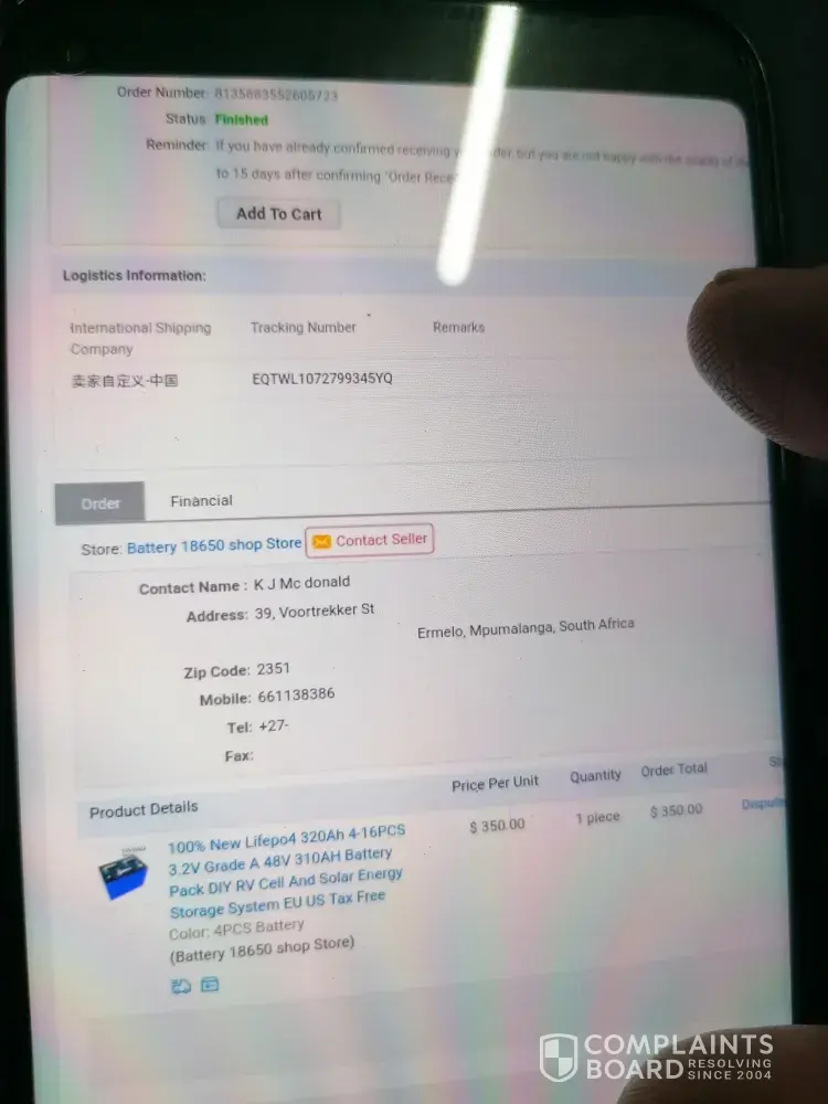 Complaint No action was taken to address consumer concerns. And don't understand why Alibaba/AliExpress group allow Malicious Sellers to list their products here?
