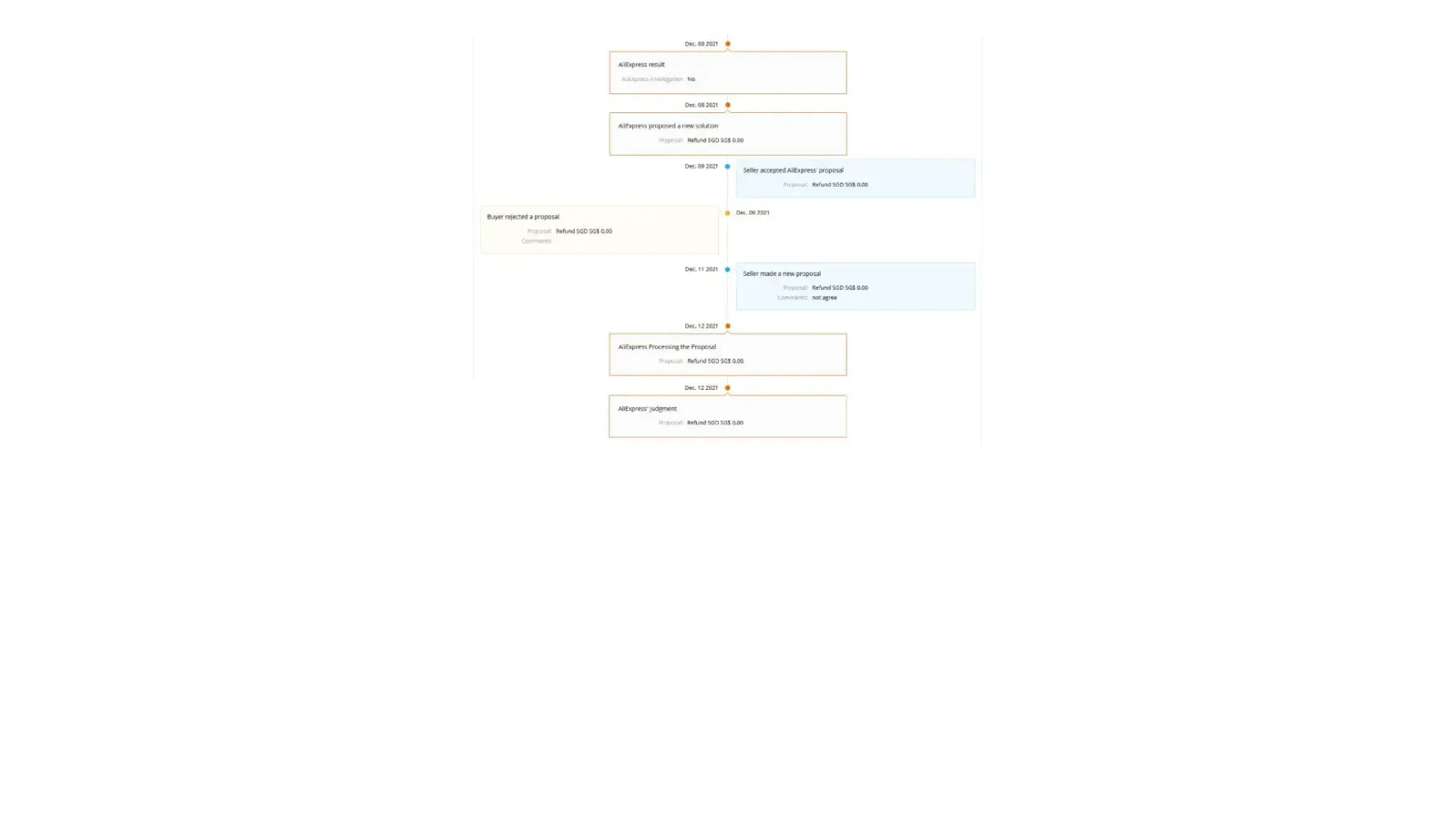 Can’t agree to and accept the statement that AliExpress replied on Mon 12/13/2021 9:06 AM & 9:16AM respectively.