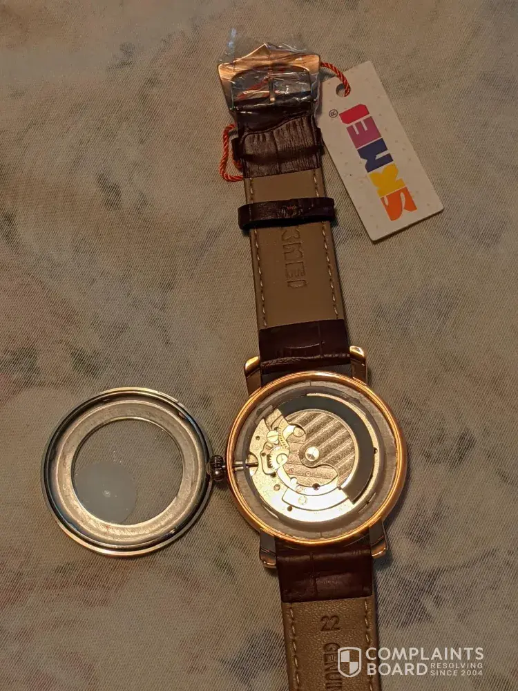 I ordered this watch via Ali Express from a vendor called Poruis Featured Watches on 25/06/2021 for £20.26. It arrived some time later approximately mid July, but it was severely damaged and not fit for purpose. The back of the watch had become detached and also one of the hands on the watch dial had fallen off. I notified Ali Express who judged my compliant as valid, but I was unable to return the watch in the short timescale of 1 week. However I did return it on 19/07/2021 at my own cost (£5.70) to China j- receipt photo attached. I never received any refund whatsoever and after several futile attempts to contact the vendor, Poruis, who only offer an auto response robotic system that resolves nothing, I put in an appeal to Ali Express, attaching 3 photos of the damaged watch and a photo of my returns receipt. For some reason they judged that I had not returned the watch, so I am out of pocket not only for the appallingly faulty defective watch, but for the return postage. Frankly, Ali Express have no idea of the concept of customer service and attempting to gain the full refund to which I am entitled has become practically impossible. However, I am not prepared to give up on the matter, hence the reason for my complaint. Basically I feel I have been swindled and I should be fully reimbursed, because the faulty watch was totally unfit for purpose. Please see photos attached and please try to ensure that Ali Express face up to their responsibilities.