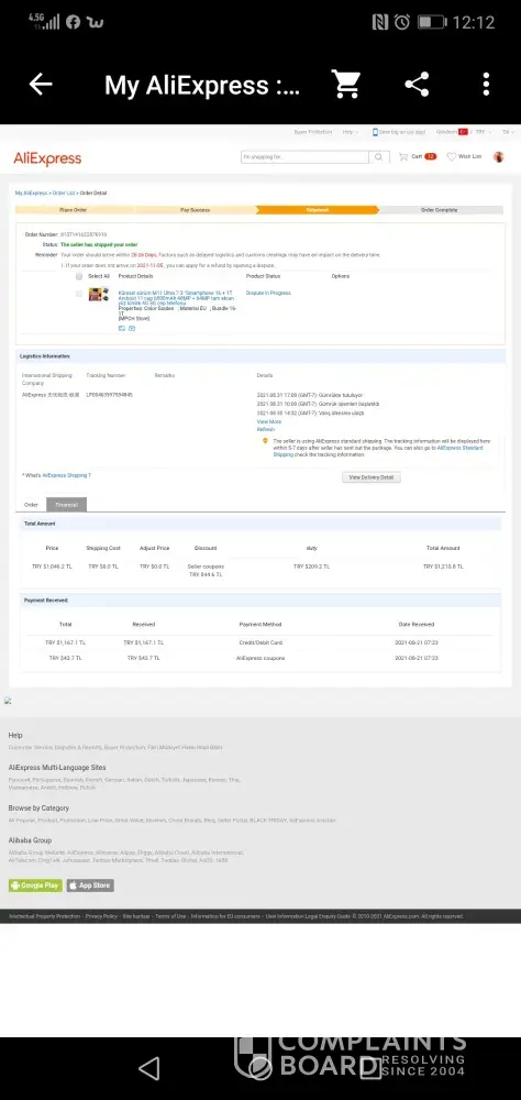 Hi, I've been shopping on AliExpress from overseas a skin 21.08.2021 Turkey Customs tracking number sent with the order number on [protected] 24.08.2021 lp00463997594845 31.08.2021 no disclosure was made since to me since Istanbul is seen in both the phone and the customs directorate Directorate of Customs tracking number postal LP00463997594845 what, I asked myself go you can't know where this number is from trackin17 takipsiz they have been sent to follow them from the site should give you another number he said I did with LP00463997594845 is takipsiz there are no results I have been requesting a refund from aliexpress for 2 months they do not refund my money I gave 1, 167.00 pounds of money 210 pounds of si customs duty and sent without tracking please help them return my money