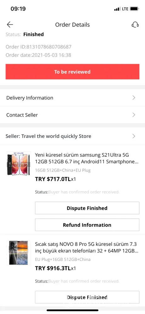This is ayhan.2021/5/3 ordered 2 mob. Phones. None received. For one pay back made, for other one payment not accepted. Order no:[protected]. Why one made other one not, no answer for that. Same order same reasons. Sorry to see aliexpress does things unfair. I waited for 5 months; nothing received but also lost money. Awful service
