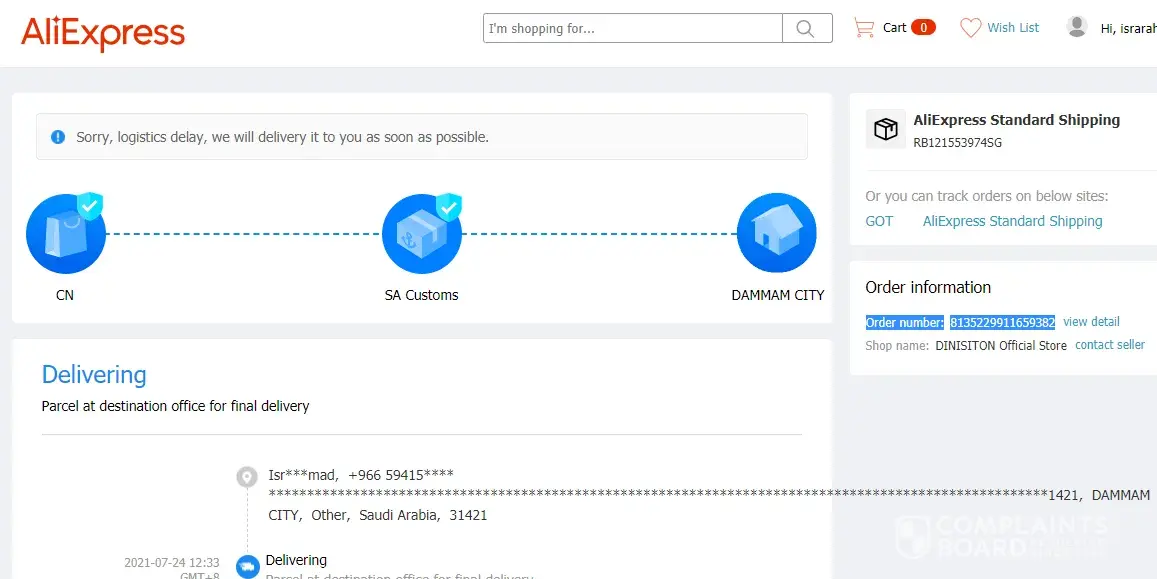 Desired outcome: total refund and the banning of Cainiao delivery until they get their delivery system right