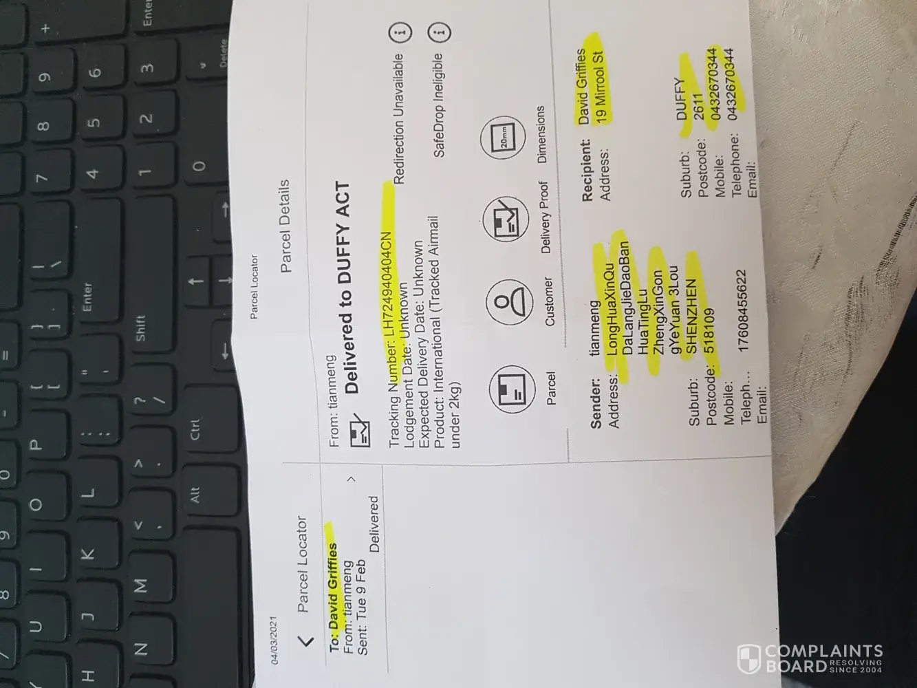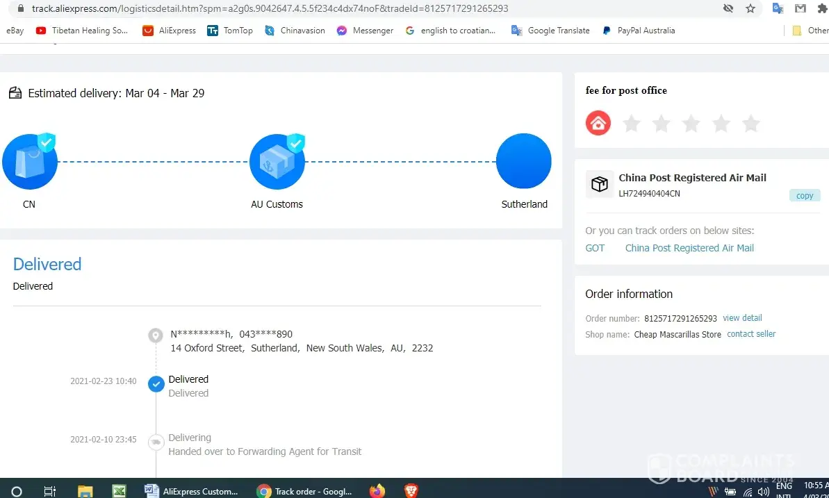 (5) The dispute I raised was abruptly closed by Aliexpress once I confirmed an item was sent to Australia. At this stage I was still under the impression that we were dealing with my correct order. Not until Australia Post looked into the matter was it clear an error was made at on seller's side.