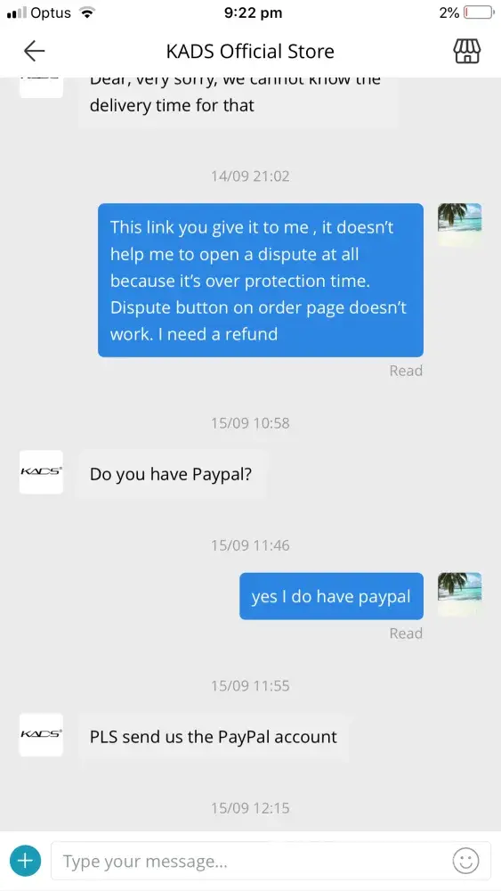I've made an order on 25/05/2020 for KADS stamping polish, Order No is 8014607460936394 and I haven't received my order after 3 months, I didn't realize my order had passed protection time but the seller didn't extend protection time so that I could open a dispute after not receiving my order. i have been contacted seller for a refund, seller offered to resend products to me. I said what happen if they get lost again and seller changed his/her mind to ask my Paypal account . 2 days later, seller change his/her mind again to offer me other products instead of my KADS stamping polish (seller said: because they are liquid, it takes long time to get to Australia).