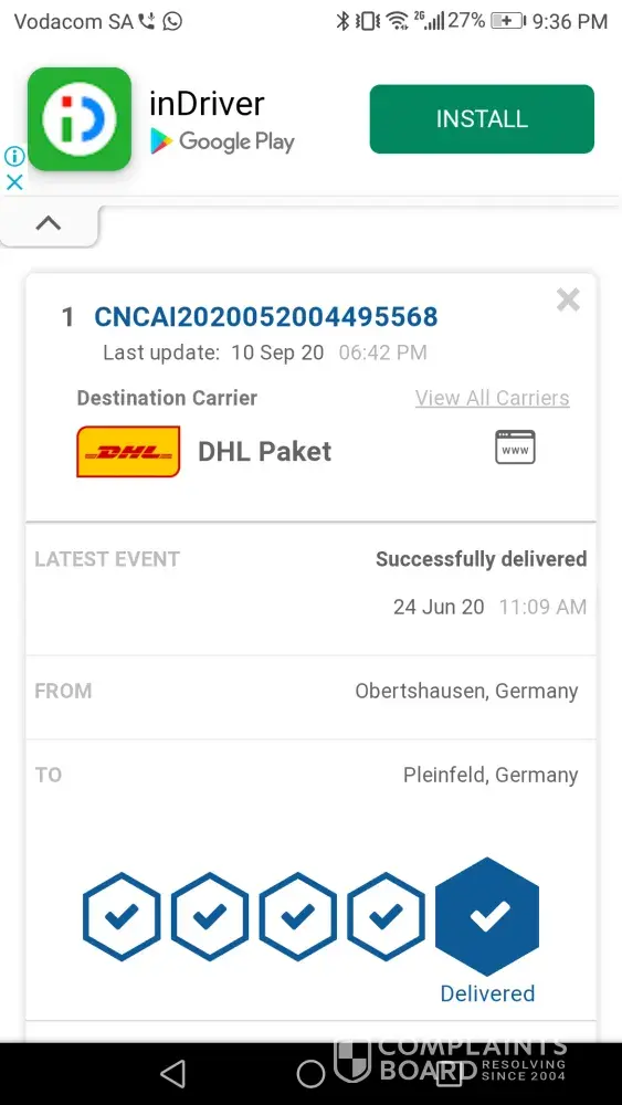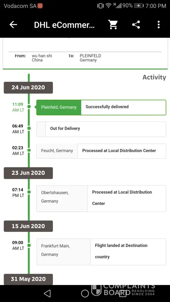 I have not received my order and it has been 5 months now, it says it was delivered to Germany pleinfield ... YET I AM IN SOUTH AFRICA. I placed the order on May and in June it was delivered to Germany and there after did not display the tracking info then all of a sudden it said delivered to Germany Pleinfield. Seller is not responding and even EVA does not respond to my query. I did lodge a dispute but cud not get assisted