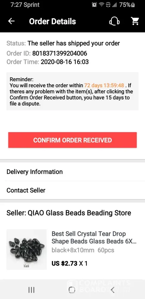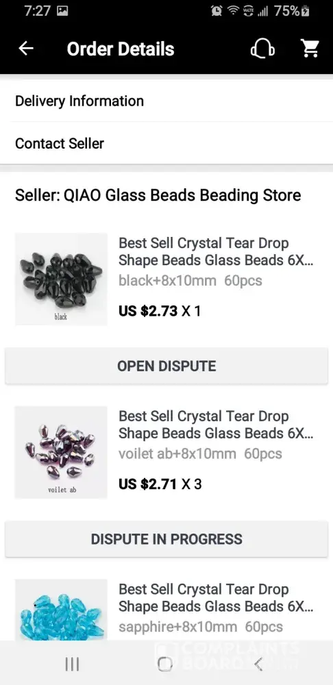 I received my package yesterday 9/3/2020 but it was missing 3 packs of violet beads. There was a label from my post office covering up the aliexpress label. I managed to expose the original label. I translated from Chinese to English and it clearly stated to eliminate the violet beads. Those are the ones that are missing. I opened a dispute and uploaded all my evidence including the original and the translation. Aliexpress found my claim invalid. I've been missing a lot of items lately and I dont want to shop with aliexpress any longer