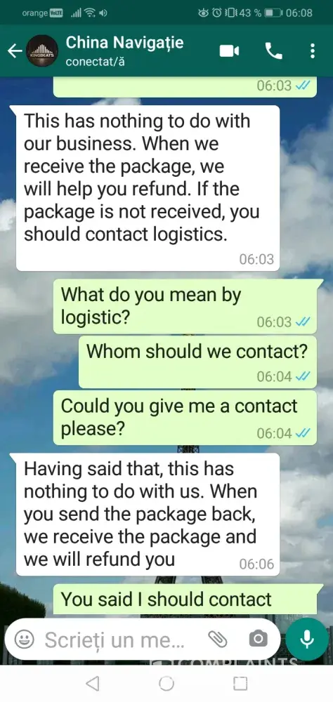 I gave them the tracking link but nothing îs solving. I told them that they should complain the local post, as îs on their delivery back to sender.