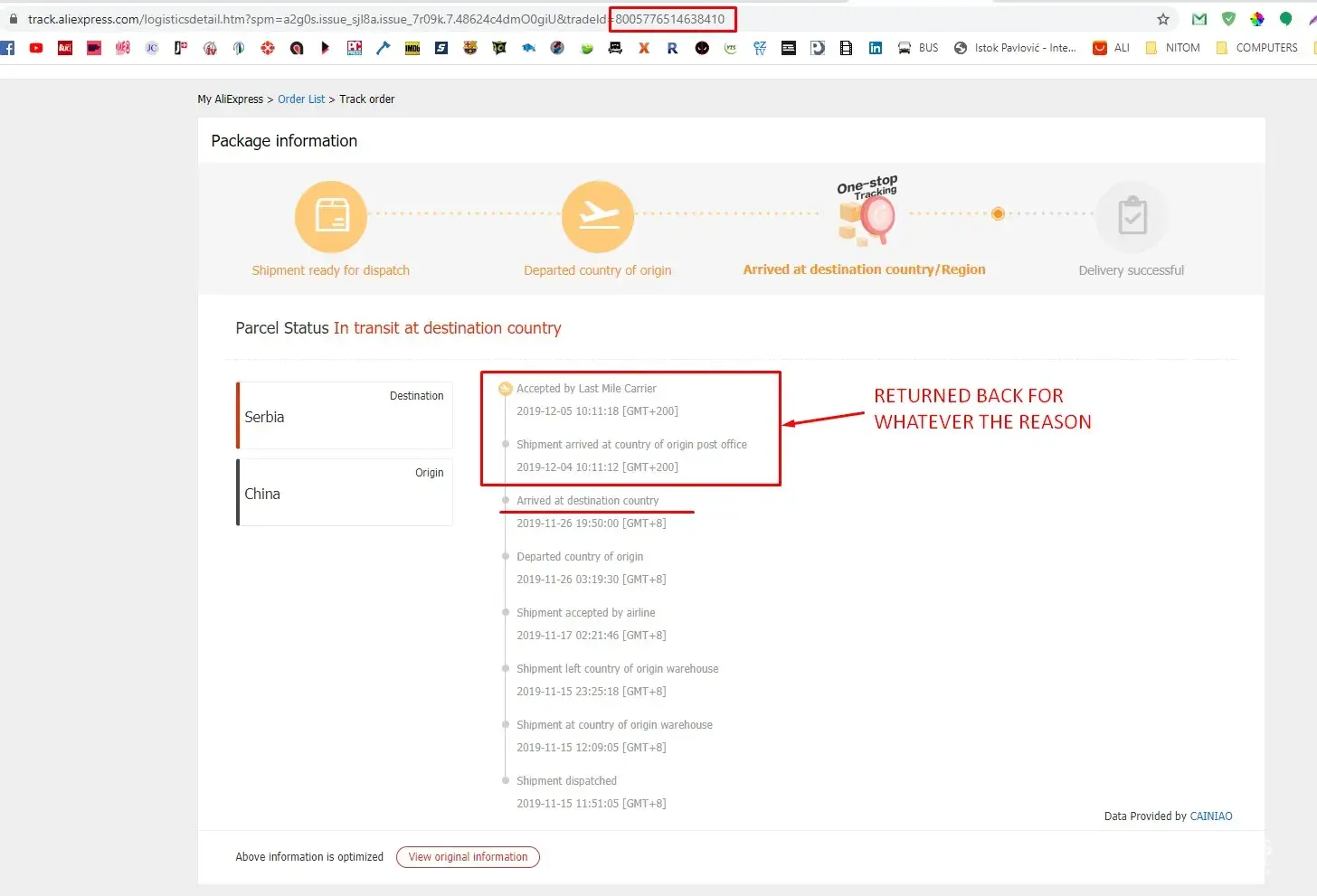 Problem is that tracking record actually shows that the package has returned to China! So I won't get it anyway.