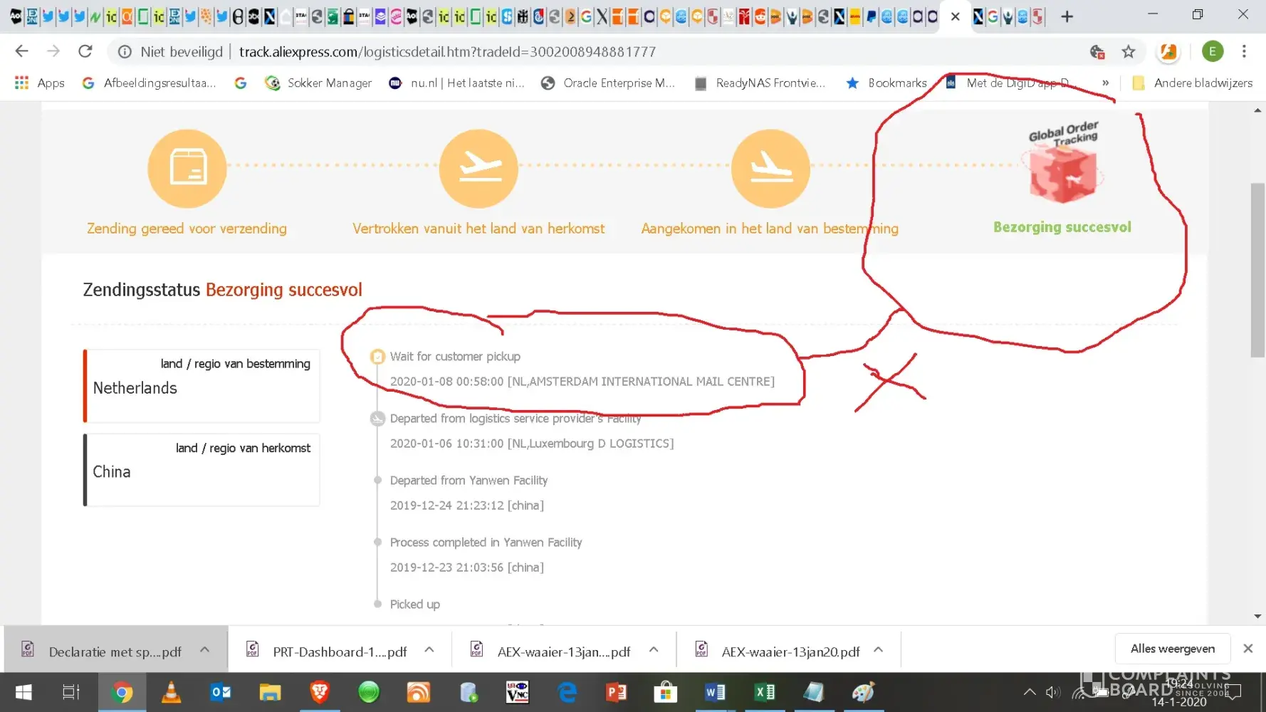 I did contact the Dutch postal service. They do not have the iten in their system. I am unable to pick it up.