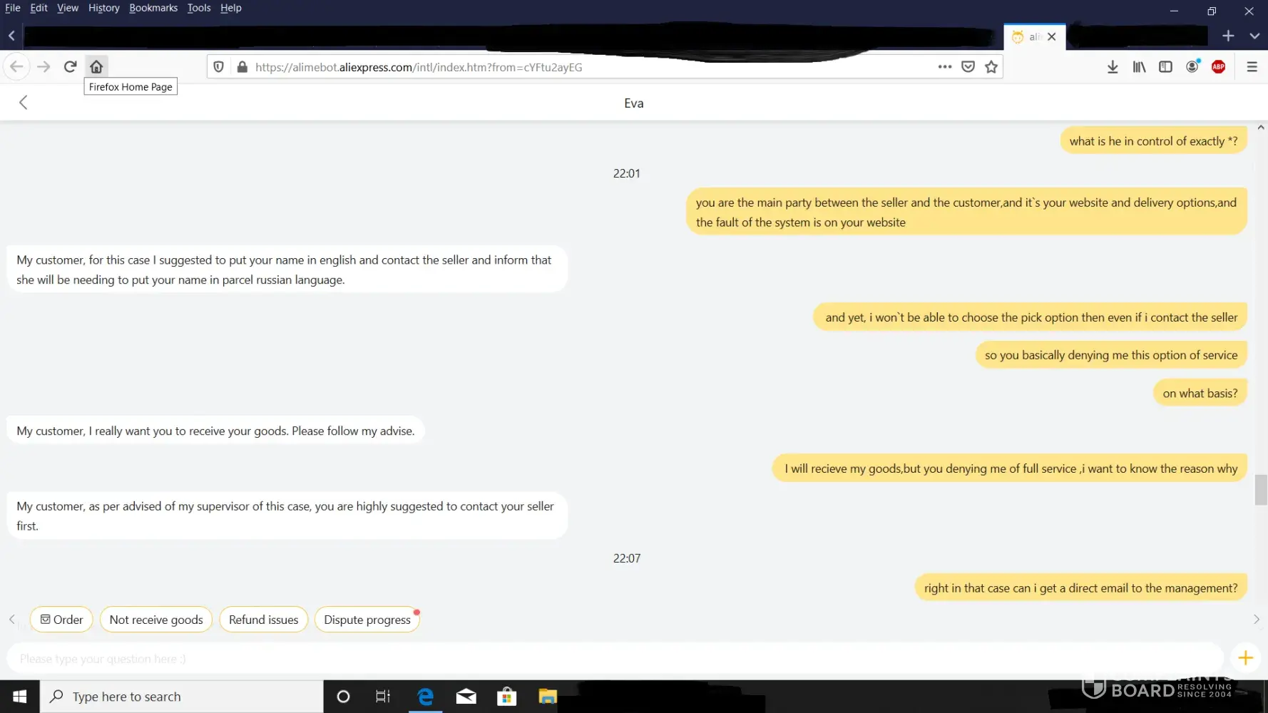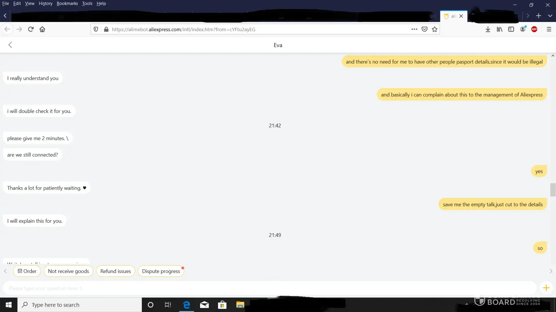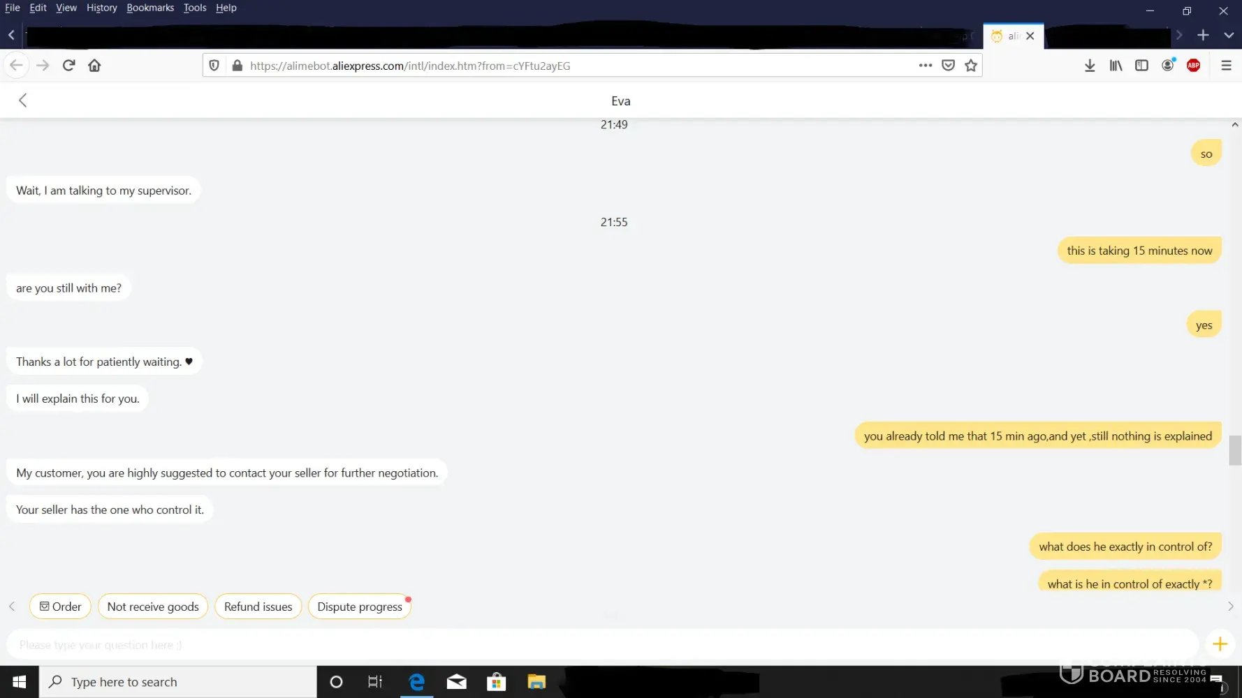 I haven't received an item and when I tried to open dispute I got that "patience message".