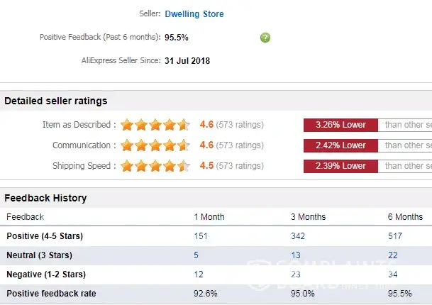 For example, how can be a rating of 95.5%, if 517 positive feedbacks for 6 months divide by 573 total feedbacks = 90.2% (Dwelling Store- https://www.aliexpress.com/store/feedback-score/4433150.html).
