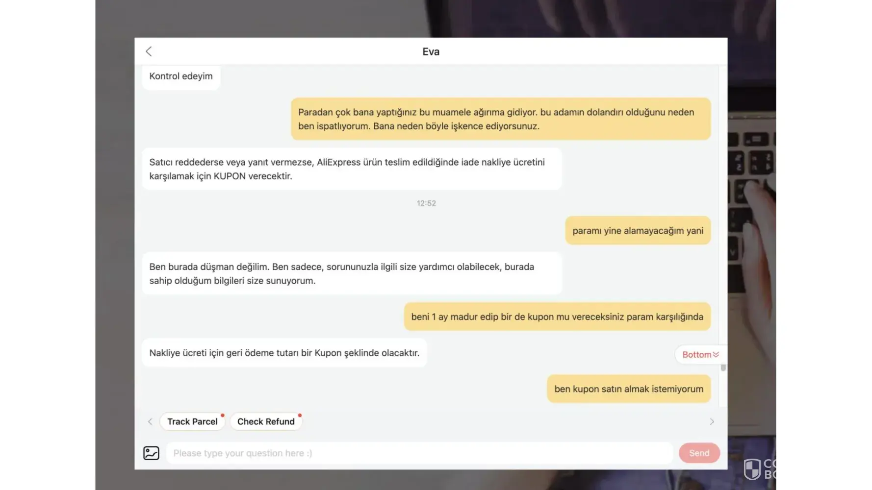 I ordered a hooded jacket on Aliexpress. 1300 TL + shipping tax cost around 1700 TL. My order number is [protected]. The seller sent an item I did not want, by the way, 1 month has passed. I also opened a dispute. They gave me two options. Returning my 700 TL defect money and keeping the product. And a full refund of my money. All of them are included in me except tax and shipping. Of course I chose the second one. After the return process, it says that the seller has paid the shipping fee, go to the cargo. I went to the PTT and they asked for 800 TL. I wrote this on Aliexpress. They say talk to the seller, I wrote to the seller. No answer. Aliexpress says pay the shipping fee of 800 TL, we will give you a 800 TL coupon. Seller or scammer, you decide on Aliexpress. If you're such a sucker, we sell coupons too. They said if anything happens, you talk to the seller. I talked to the customer representative for 30 minutes. I added 1-2 screenshots. You will see how true what I have written is. Also, the customer representative turned off the chat. It's like saying if you're going to get the coupon, get it, if you don't, don't close the shop. I couldn't get enough of my sucker.