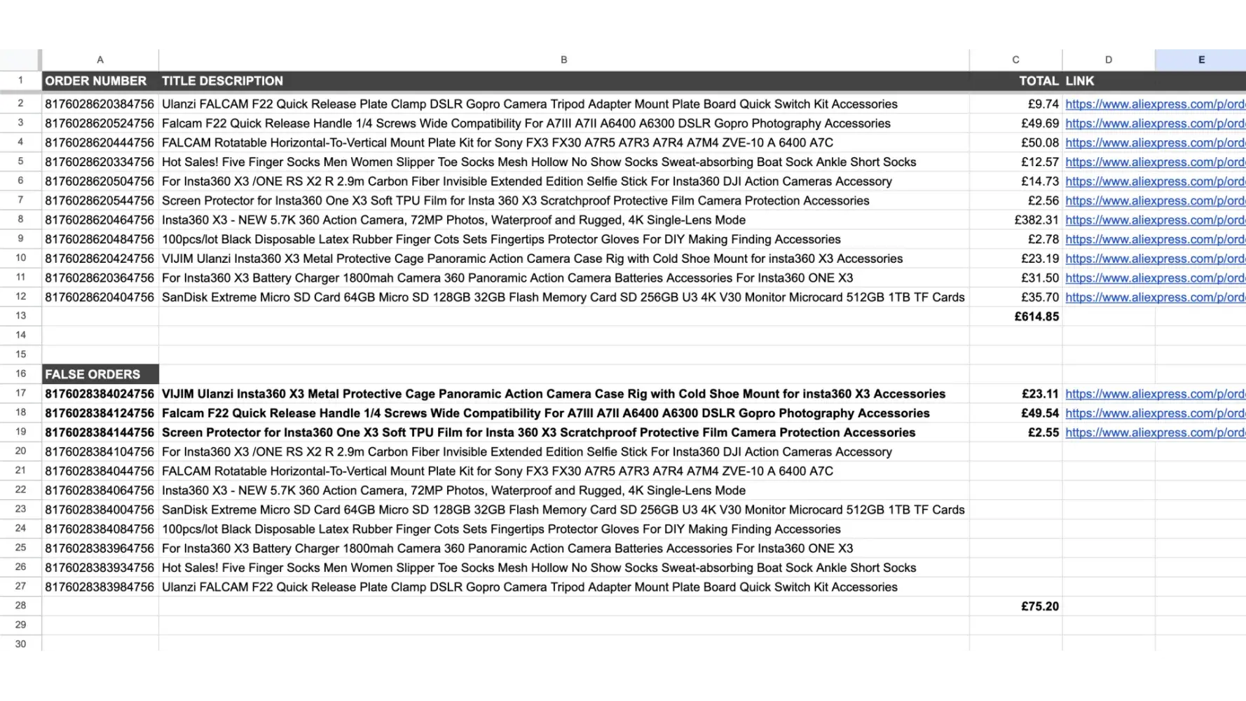 AE has something called 'Buyer Protection' which helps towards AE stepping in and helping secure a refund and correct disputes. Problem is, the real delivery date is sometimes longer than the buyer protection timer. I'm told my everyone on AE to wait for the false order packages to arrive. I don't understand the details of their protection conditions, clauses and timelines, but I have a feeling that I'm going to get screwed out of a refund for this additional £75.20. I doubt it's the sellers fault, rather the false orders were most likely generated by in insider at AE who has clearance and knowledge of this kind of fraudulent practice.