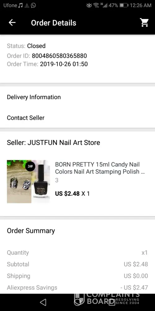 I ordered Nicole diary and born pretty nail polishes and they ended up charging me but closing the status of the product. After charging me for the product they end up saying some technical error. If you don't want to give me the product at least return my money! This is the most unprofessional attitude from aliexpress. My cousin had used this site for years and she asked me to sign up for it since they were giving deals and discounts and I did. I used my cousin's card to pay for the bill and every single time she'll get charged but the product status will be closed and no product will be shipped. I never thought aliexpress will loot me like this.