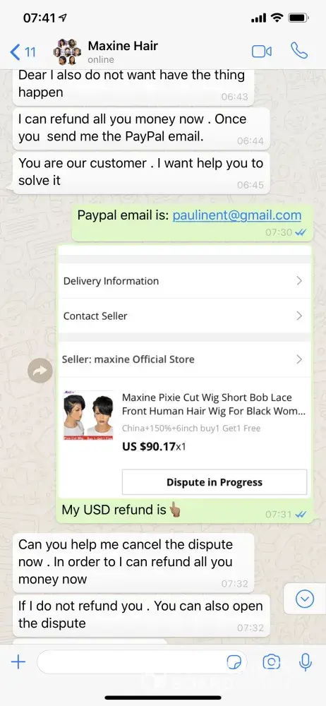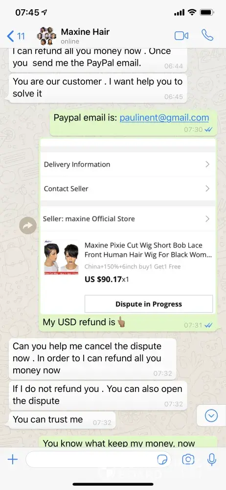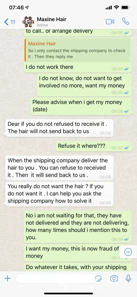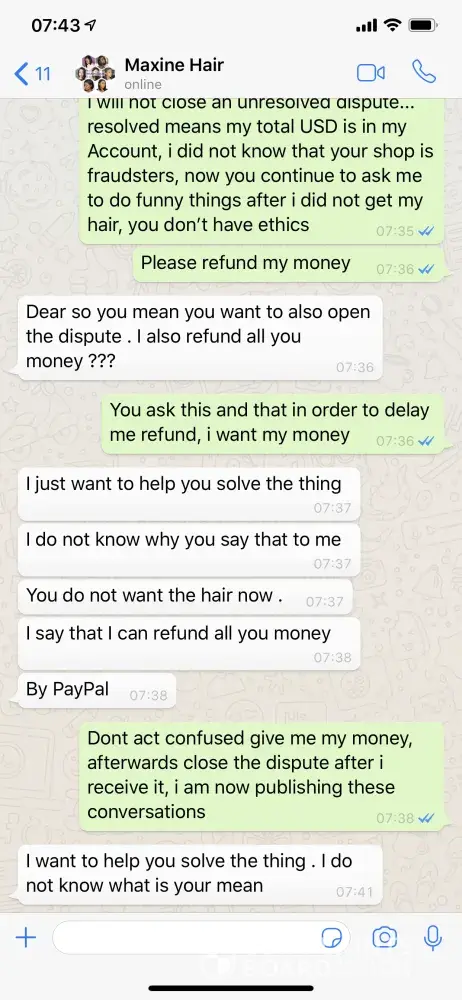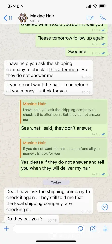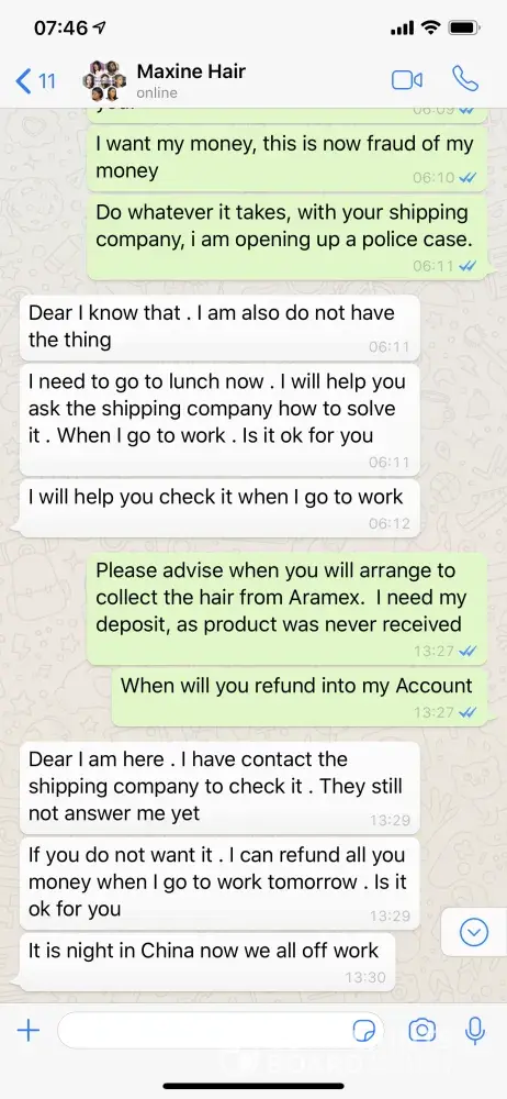 I would like to save you a big loss, never buy from Ali Express from a shop called ‘ Maxine Hair Store', they will not give you your refund if the hair is not shipped. Aliexpress and seller marked my goods as successful delivered, my order ID [protected] when i had not received my goods and they had failed to reach their own shipping company Aramex, later the seller pathetically told me i should go to the website to mark that i had received the hair and put 5* for product and service, when i had raised a dispute and want my money. How unfaithful, how unlawful, how disrespectful to think Chinese stores can consider the African Continent as having stupid buyers to try and treat customers as such. I am still fighting for my money... please be careful they will steal from you too...