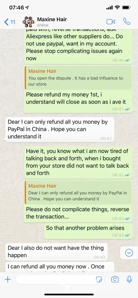 The seller deny to return my money until today just saying they will do I need to wait patiently everyday just to use time to their favor like they did before that I miss the dispute time.