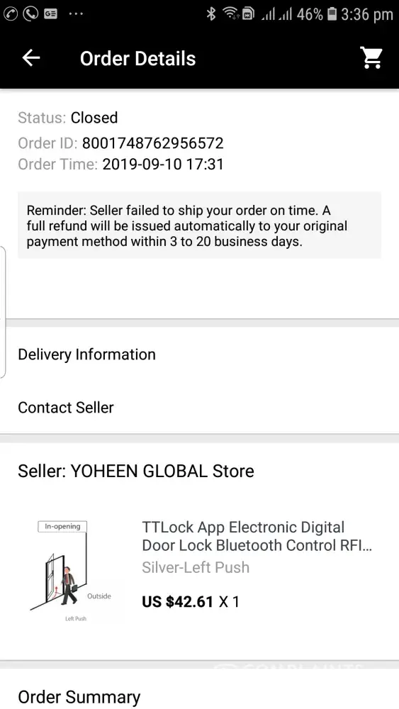 My lock was from yoheen global store i have msged them as well but they are saying ali express will give me refund
