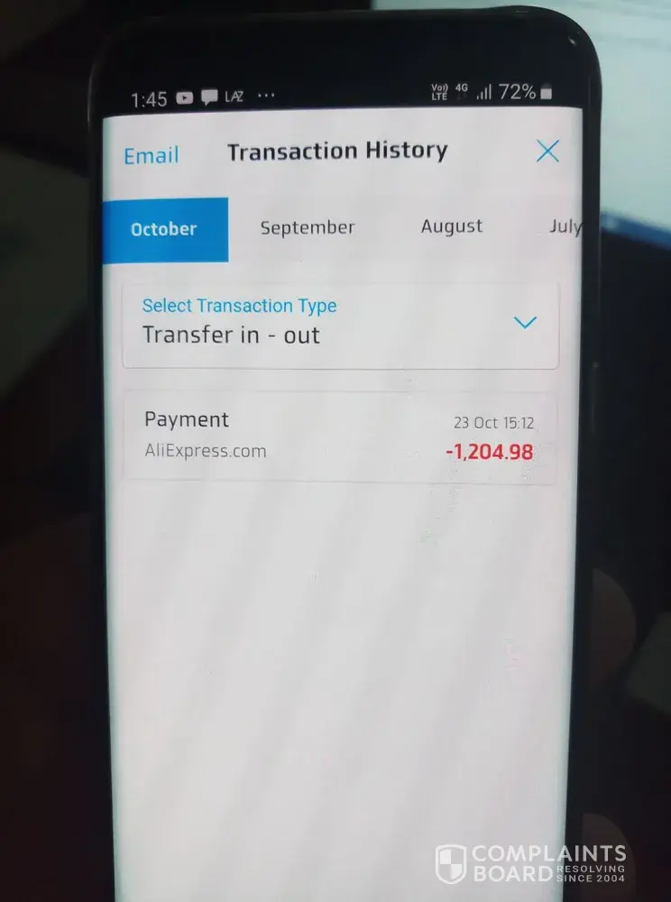 on the 23 Oct at 15.12pm 1, 204.98 baht was taken out of my Krungthai bank account