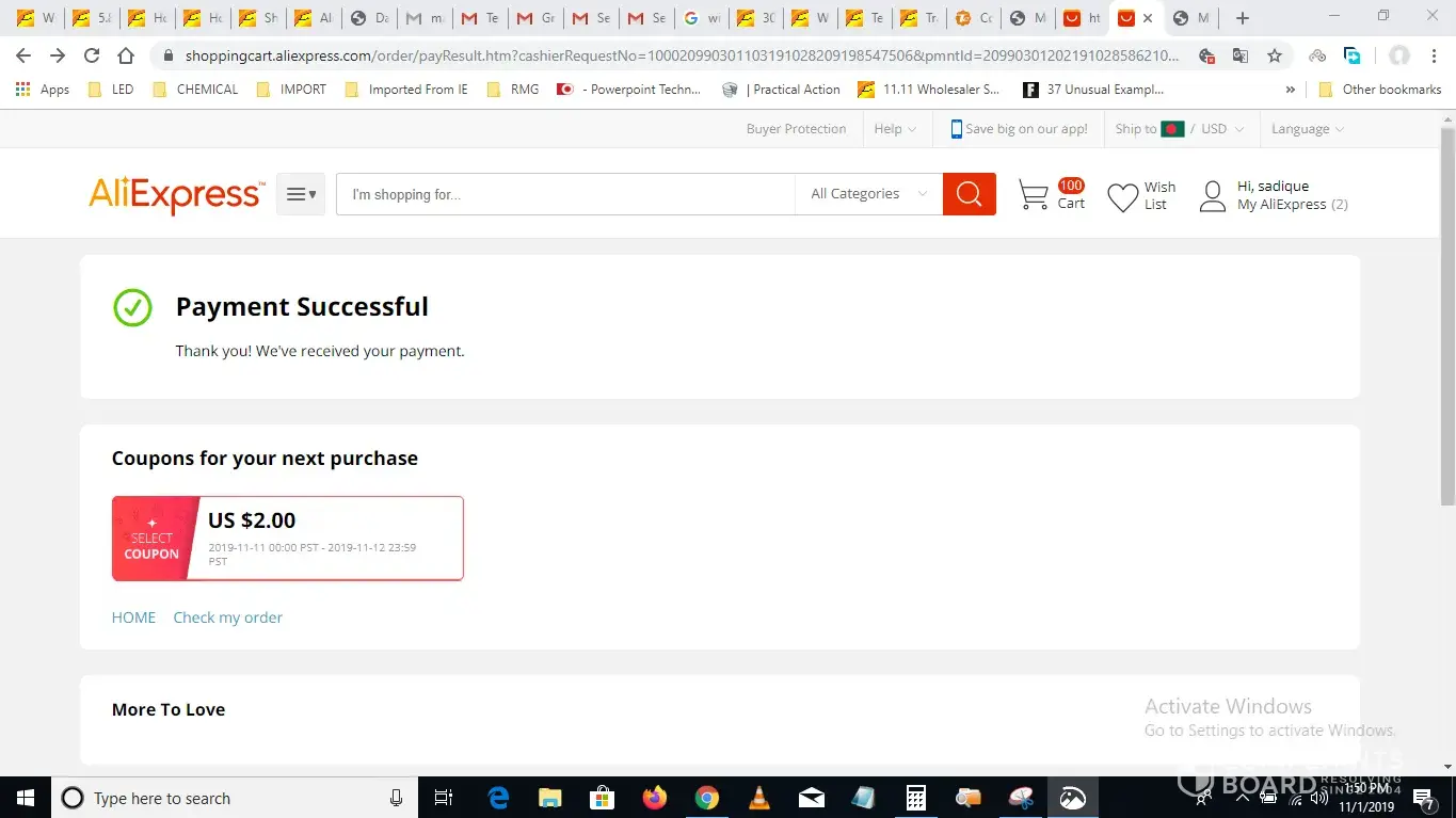 My payment completed through Credit card on 29/10/2019 time 12:27AM and it showed the message " Payment Successful. Thank you! We've received your payment." But no order is displaying in my aliexpress Dashboard.
