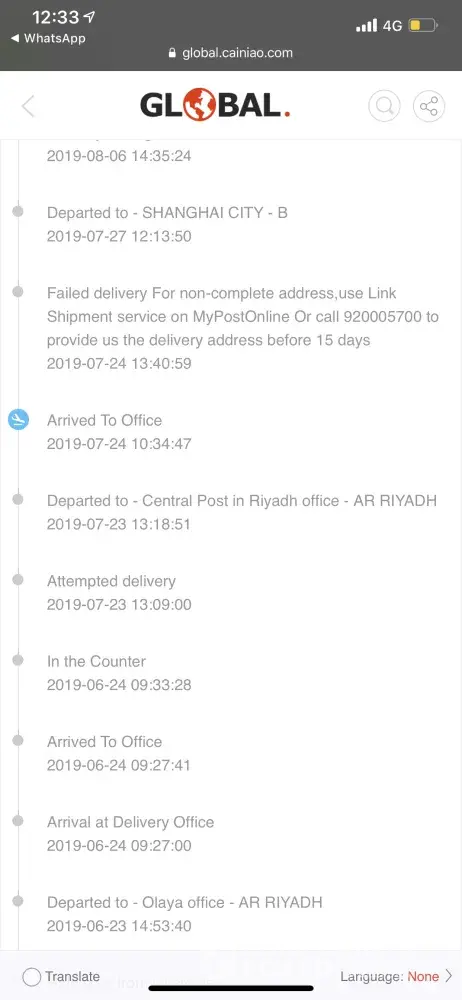I could not receive it here in Qatar I asked fro dispute it was rejected from Ali express, then I sent to supplier LEORY telling them the item was returned back to China, they said send us the document from Qatari Post we will refund you the money I got it and sent it to them they refused to refund, said Ali express closed the dispute so no refund, attached is the document from Qatari Post.