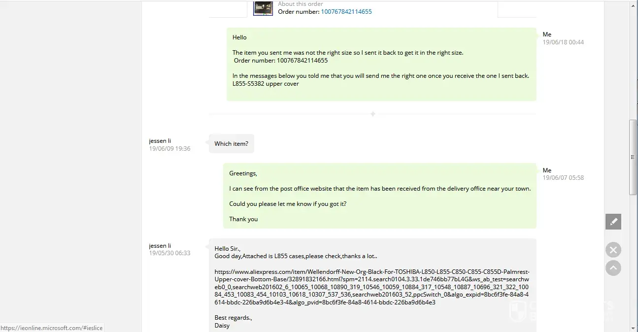I ordered a product at Jessen Engineering Co.Store on April 18th, 2019. I got the product in time, but it wasn't the right size. The product was a computer case which was smaller than my computer, although I had specified the size to the seller. However, I sent them a message and they told me that they can change it once I send the right one.