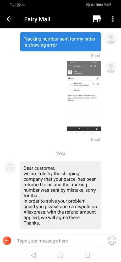 Good day, I will like to make a complain about a seller Fairy Mall from whom I bought a diaper bag made payment of 15.98 via aliexpress pay and the seller later sent a message to me to make additional payment of 1 dollar which I declined, the seller however said I should cancel my order by clicking on others, but I insisted I will cancel the order stating my reasons for the cancelation, the seller however refused to agree to the cancelation after I have canceled the order the seller the later shipped the order and sent a wrong tracking number to me and I complained to the seller, I was told to open a dispute that the tracking number I was given was incorrect. Knowing fully well that I can open a dispute until after 10 days of shipping. I see this as wickedness and injustice. This happened on the 26th of August 2019 the order ID is [protected] tracking number RU 292405353NL. Aliexpress is getting worse by the day, this is my second encounter this month but this one I won't let it go. Thanks